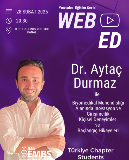 Organized by the IEEE EMBS Turkey Student Branch, WebEd (Webinar Education Series) is an online seminar series designed to foster knowledge exchange in the fields of health technologies, biomedical engineering, artificial intelligence, and related disciplines.